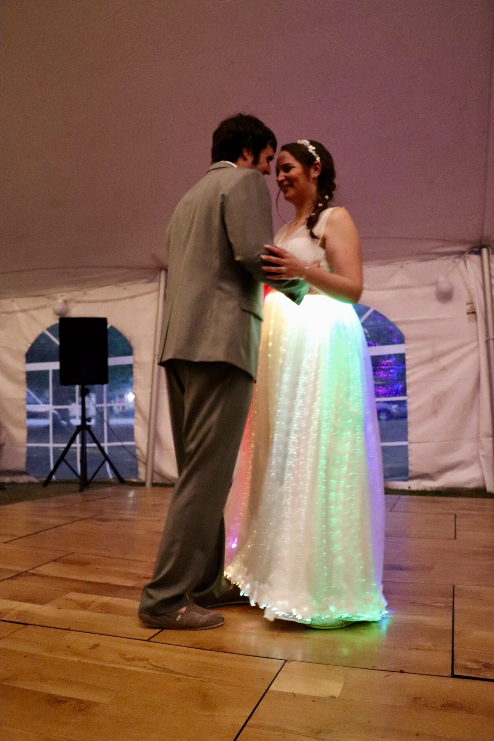 - Lighting that would bounce “to the beat” – required putting a microphone on the dress that wouldn’t be covered.