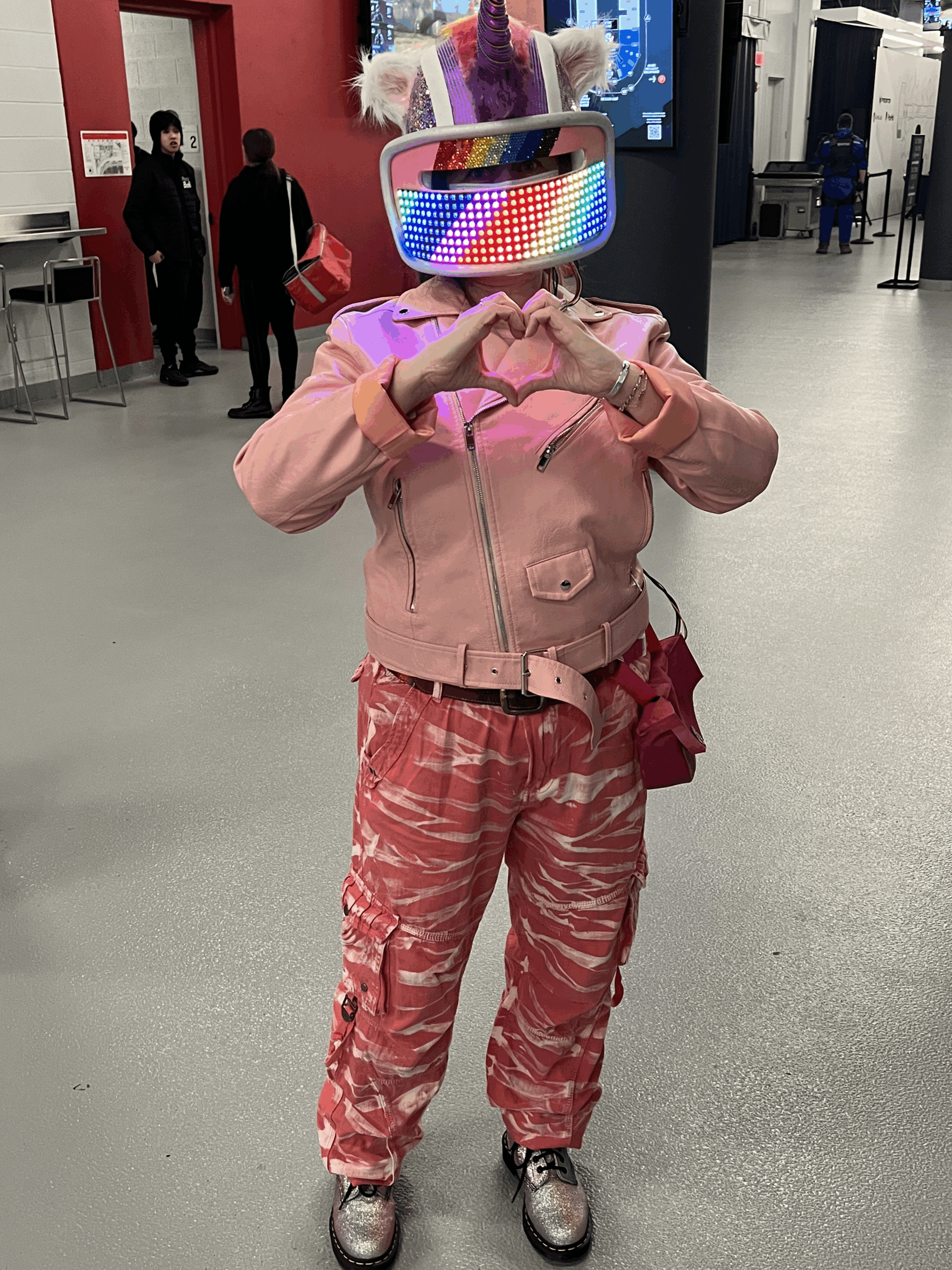 This project was created for a cosplay event for the Rainbow Six Siege 2023 Championships. Tracey designed a helmet after the original Rainbow Tachanka event, which she wore at the 2020 R6 Championships. When we had the chance to go back we knew we had to step it up a level so I designed a wearable controllable visor. We based off what we learned from the magic dress, and needless to say it was a hit at the event!